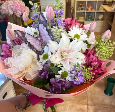 Rosas: Representan el amor y la belleza. Pueden ser rojas, rosas, o blancas, dependiendo del mensaje que quieras transmitir.